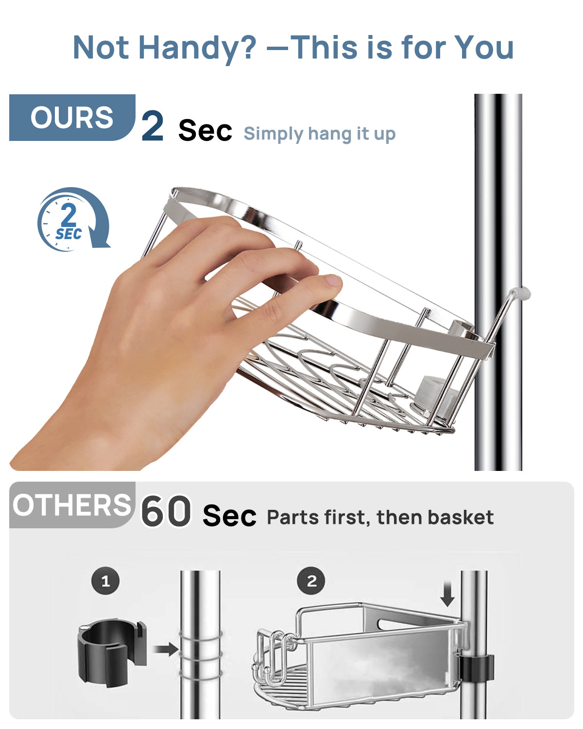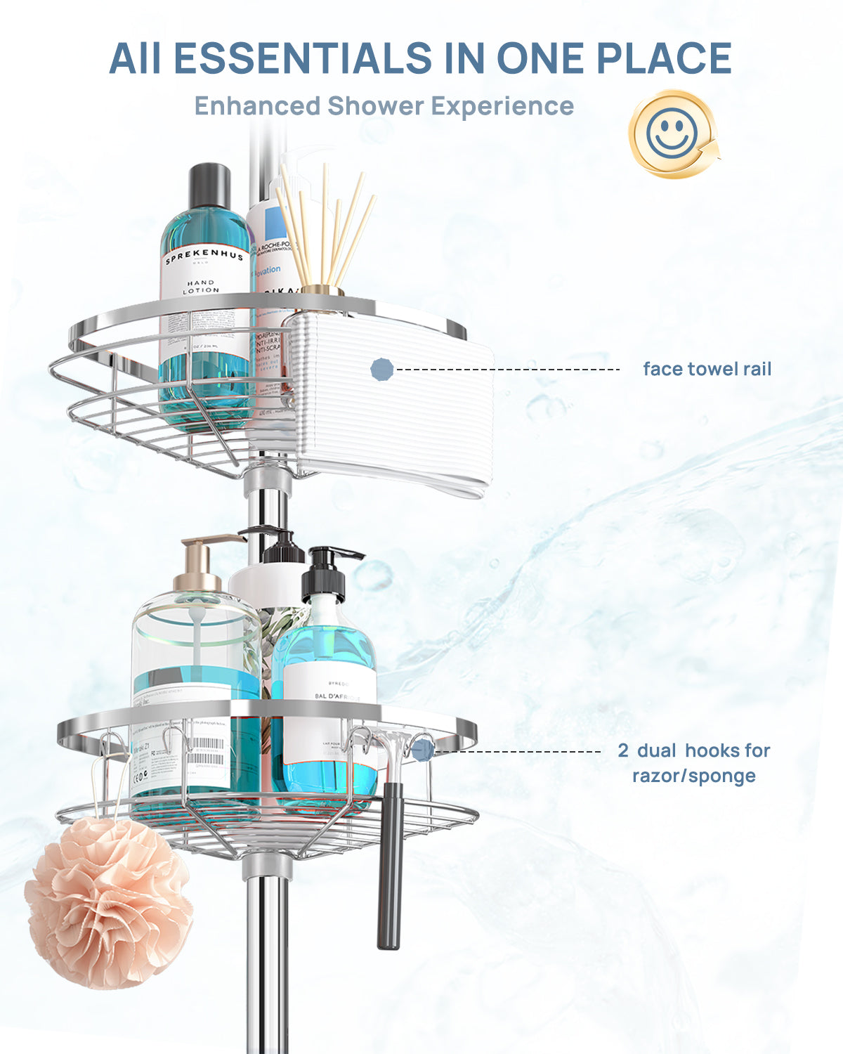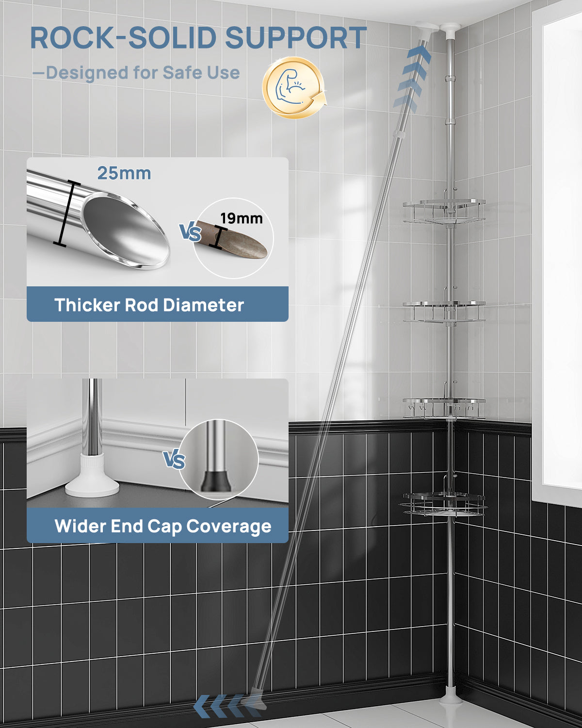 This item was so easy to set up, seems durable, and I love that the shelves are adjustable even after you've put up the main pole. I emailed customer support to ask if I could get (with payment) one more sticky pad to secure the rack to the wall (because my bath tub isn't quite flat in the corner), and it was about the best customer service I've received in a long time. They replied promptly, sent me the part for free (I paid shipping), and emailed again once I had received it to make sure I was satisfied. Would definitely purchase from this company again in the future.