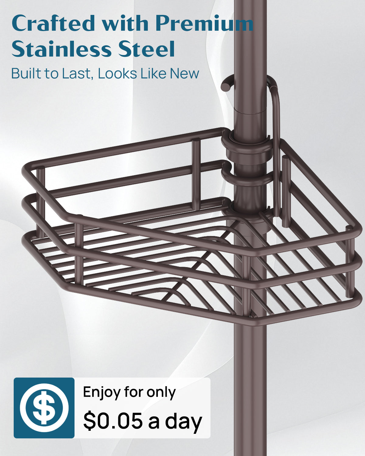 Rubber duck The size is great, it fits all 57 bath products I have. Theres been no signs of rust and it was super easy to install. Its not flimsy, and looks great. I love the extra holders on the side.